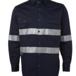 JB’s L/S 190G WORK SHIRT WITH REFLECTIVE TAPE NAVY -XS
